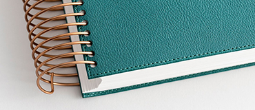 The paperback coil bound option features a flexible, black plastic coil that allows the book to lie flat when opened. This binding style is particularly well-suited for music books, notebooks, agendas, and any project intended for easy display.